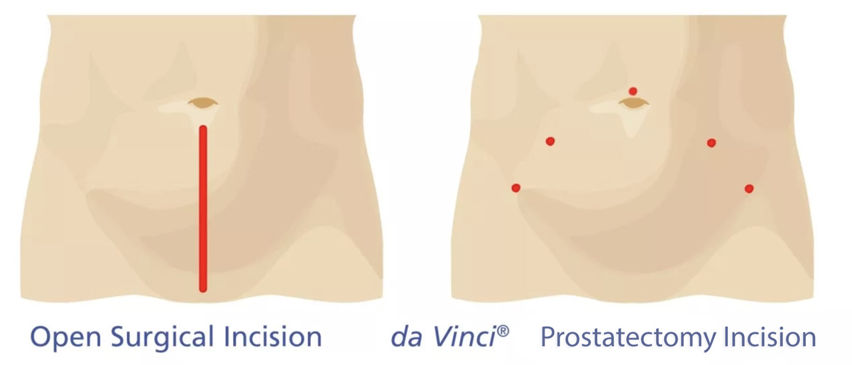 Η da Vinci προστατεκτομή εκτελείται μέσω μικρών οπών, αποφεύγοντας κατά αυτόν τον τρόπο τη μεγάλη τομή και μειώνοντας στο ελάχιστο το μετεγχειρητικό πόνο. Πρόκειται για μια ανώδυνη και ελάχιστα τραυματική προσέγγιση.